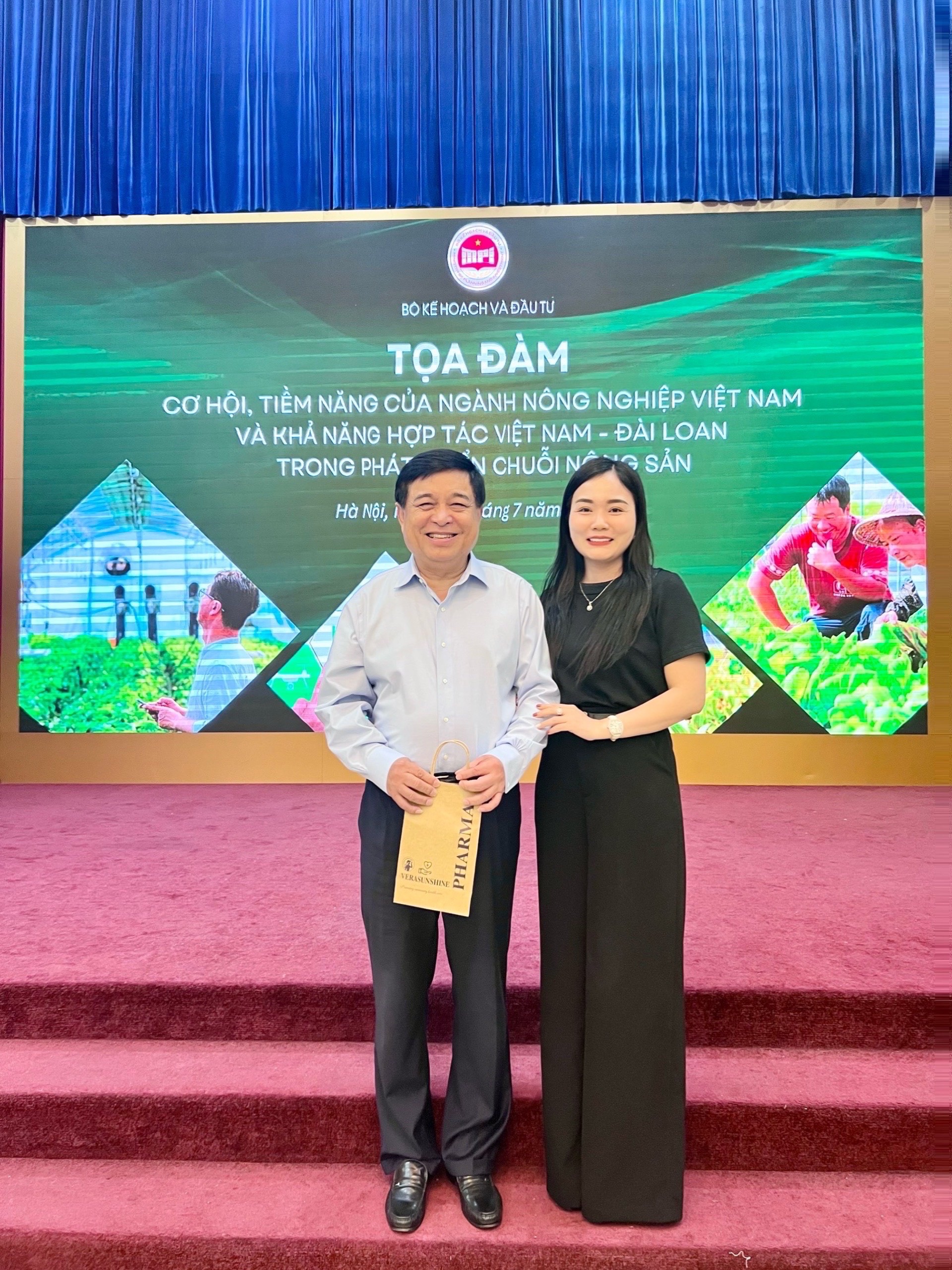 Ông Nguyễn Việt Dũng – Tổng Giám đốc Công ty cùng các khách mời trong buổi Tọa đàm “Nâng cao năng lực sản xuất thực phẩm chức năng – Áp dụng y học cổ truyền theo hướng xanh và bền vững” do VeraSunshine tổ chức.