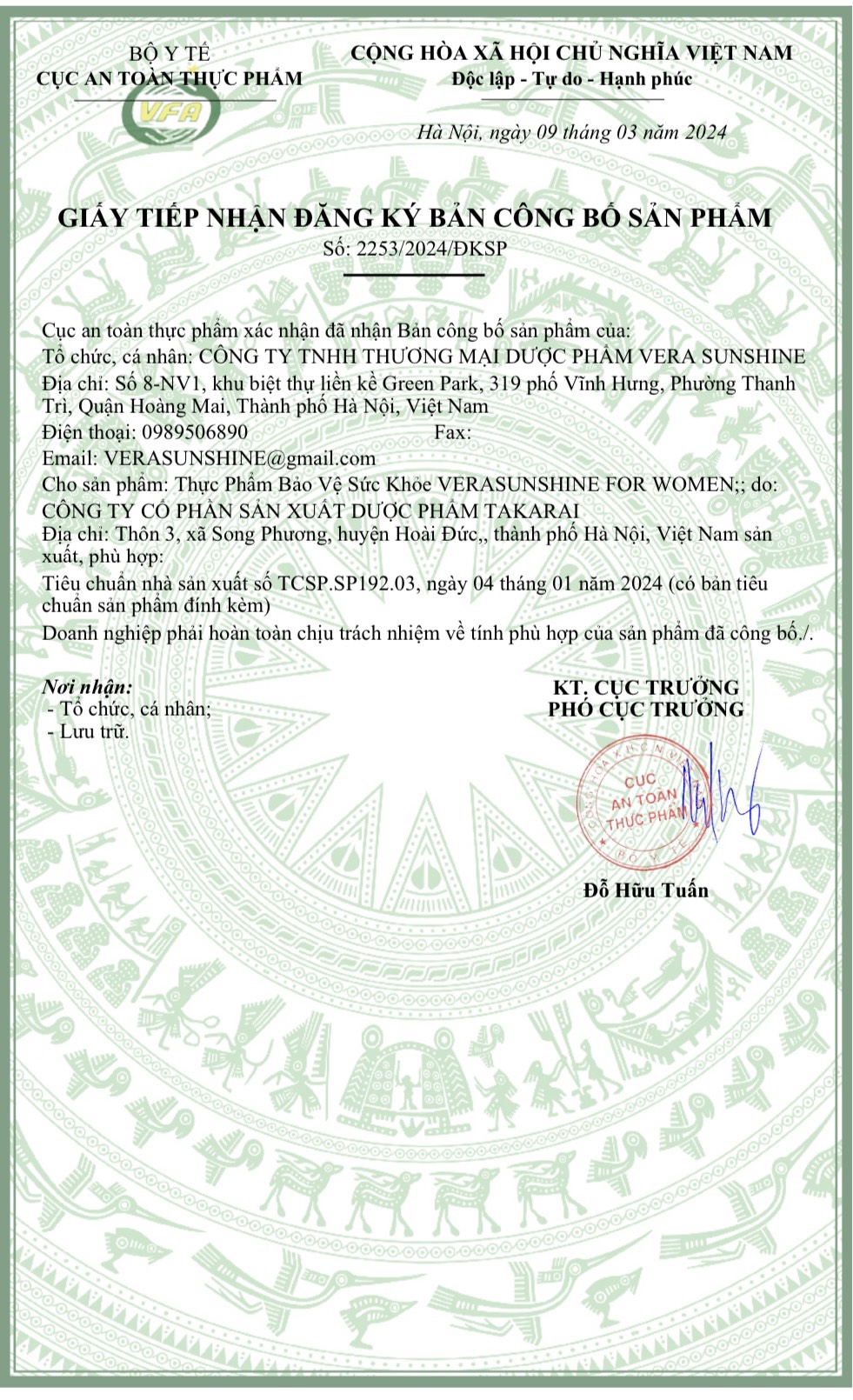 Với phương châm CHẤT LƯỢNG – AN TOÀN – GIÁ THÀNH HỢP LÝ chúng tôi tự tin làm hài lòng ngay cả những khách hàng khó tính nhất. Tinh thần nghiêm túc cầu thị, liên tục cải tiến áp dụng công nghệ hiện đại Dược phẩm VeraSunshine đã không ngừng lớn mạnh trở thành thương hiệu được tín nhiệm có mối quan hệ bền chặt với các đối tác trên thị trường trong cả nước. Tháng 5 năm 2024 Dược Phẩm VeraSunshine vinh dự nhận giải thưởng thương hiệu chất lượng uy tín năm 2024 đây là giải thưởng danh giá khẳng định cho những nỗ lực không ngừng và sự lớn mạnh nhanh chóng của Dược Phẩm VeraSunshine sau một thời gian hình thành và phát triển.