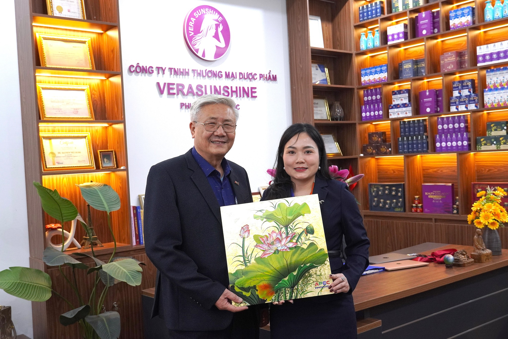 TS Trần Duy Khanh – Viện trưởng Viện Doanh nhân APEC cùng CEO Chế Thị Hằng – đại diện Công ty TNHH Thương mại Dược phẩm Vera Sunshine