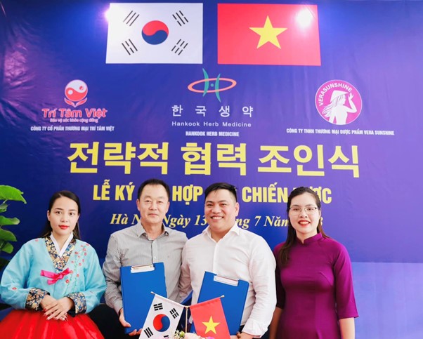 Đại diện Dược Phẩm VeraSunshine có TGĐ Nguyễn Việt Dũng, Đại diện Công ty Hankook Herb Medicine Farming Association – Hàn Quốc có Chủ Tịch LEE SANG HO.