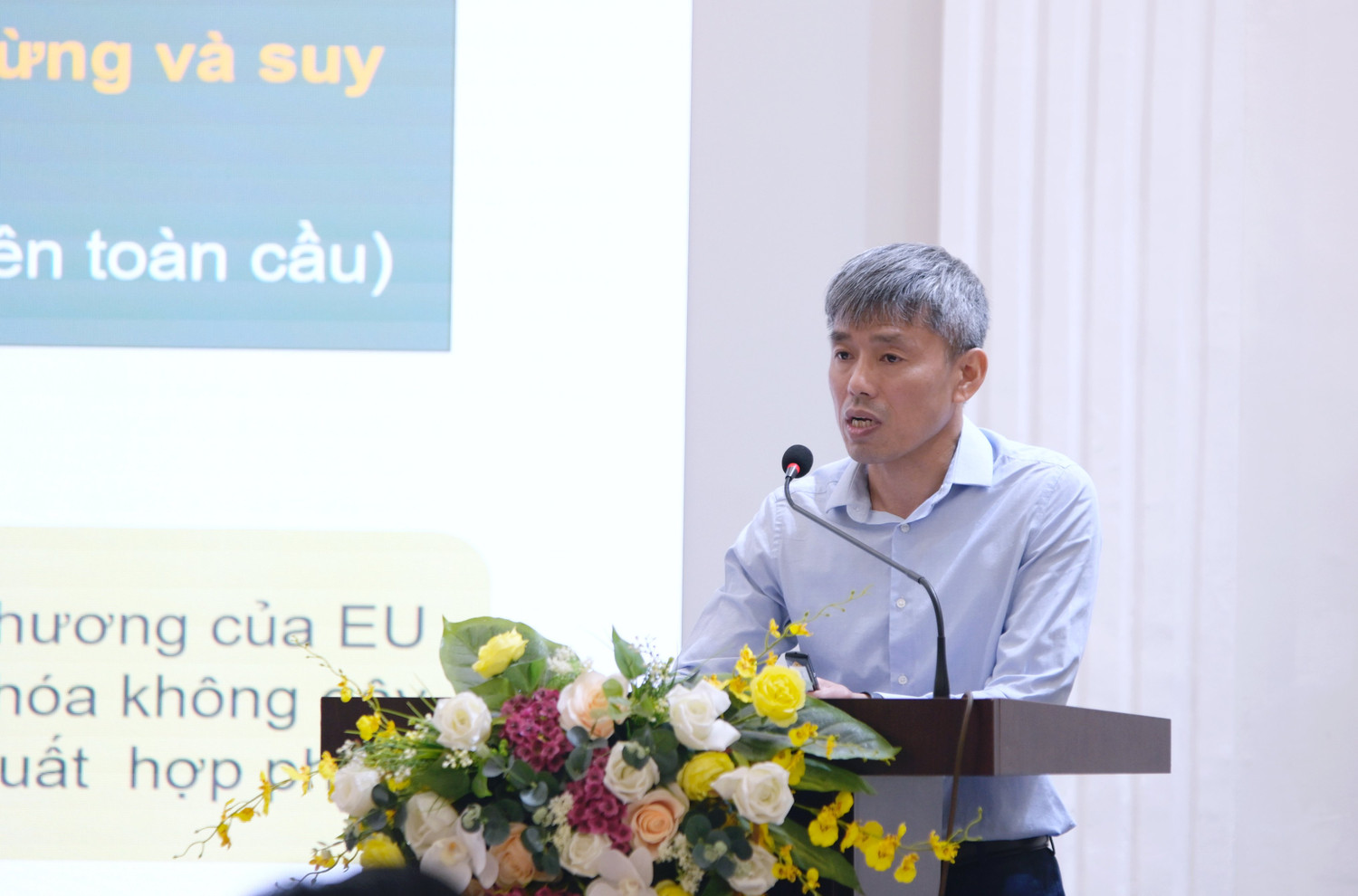 Tại Chương trình, diễn giả Hoàng Thành (Phái đoàn Liên minh châu Âu tại Việt Nam) đã giới thiệu tổng quan về Quy định của Liên minh châu Âu về chuỗi cung ứng không gây phá rừng và suy thoái rừng (EUDR); các đạo luật, quy định mới của EU như cơ chế điều chỉnh carbon biên giới (CBAM). Từ đó, giúp các tổ chức, doanh nghiệp có kế hoạch, biện pháp và lộ trình điều chỉnh các hoạt động sản xuất hàng xuất khẩu, duy trì và phát triển thị trường xuất khẩu phù hợp và hiệu quả trong bối cảnh mới.
