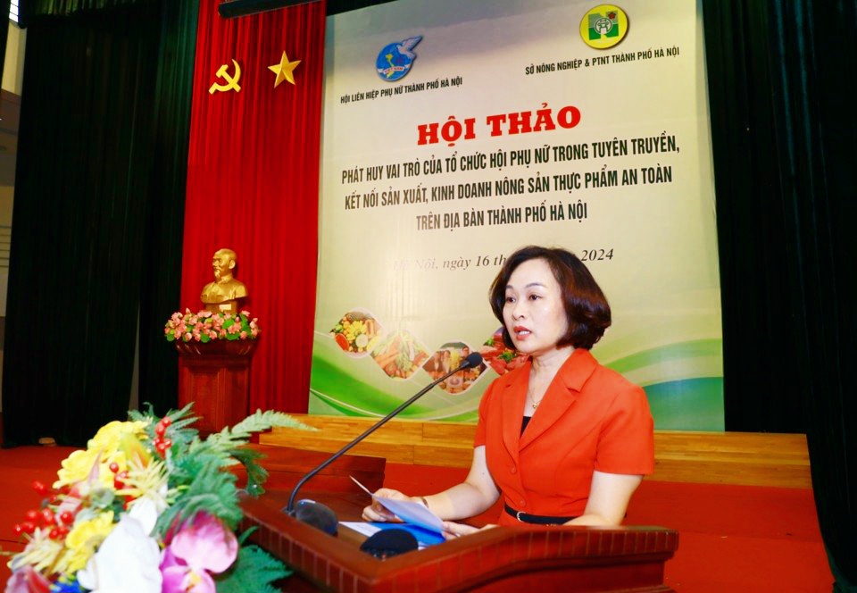 Phát biểu tại hội thảo, Phó Chủ tịch Thường trực Hội Liên hiệp phụ nữ (LHPN) TP Phạm Thị Thanh Hương nhấn mạnh: sản xuất, kinh doanh nông sản, thực phẩm an toàn được xác định là một yêu cầu quan trọng, cấp thiết để gia tăng giá trị cho sản phẩm nông nghiệp và đảm bảo sức khỏe của nhân dân. Phụ nữ Hà Nội hiện chiếm gần 50% dân số của TP, chiếm tỉ lệ lớn lực lượng lao động sản suất, kinh doanh nông sản; đồng thời là những người quyết định trực tiếp đến việc tiêu thụ nông sản thực phẩm.