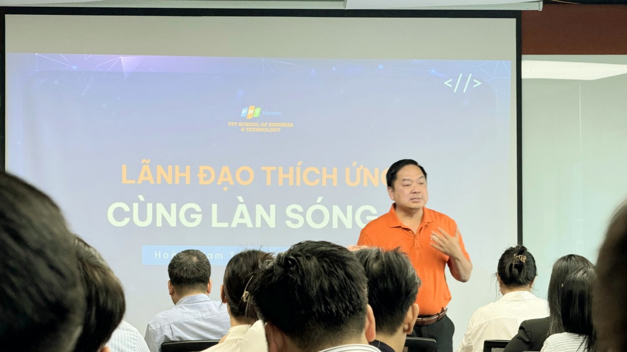 Diễn giả chính của Hội thảo là ông Hoàng Nam Tiến, Phó Chủ Tịch hội đồng Trường Đại học FPT