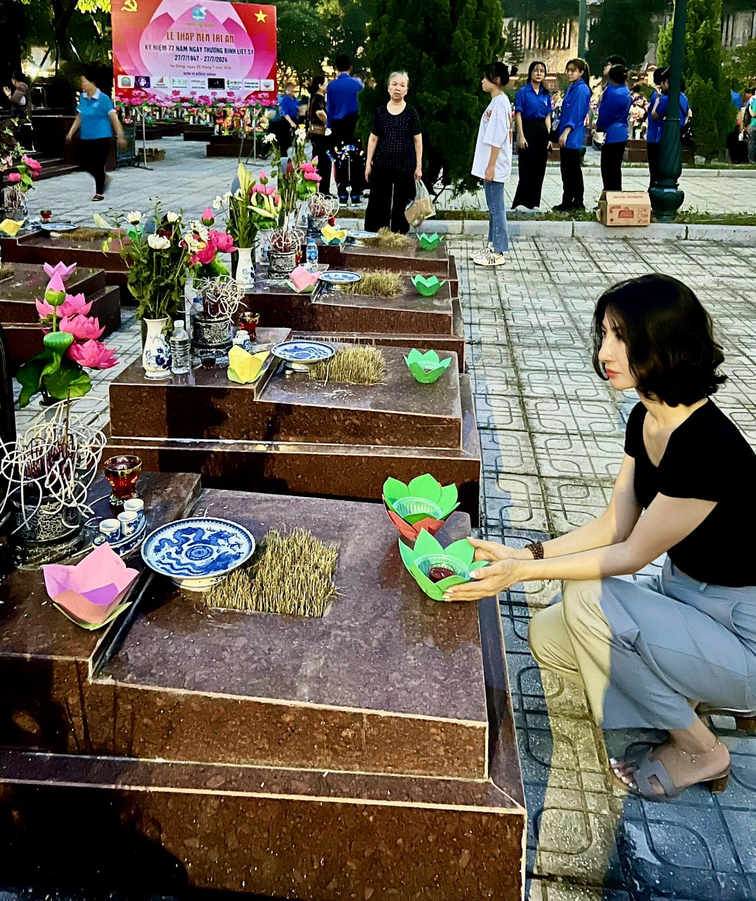 Bà Bùi Thùy Linh, Đại diện Ban lãnh đạo VeraSunshine dâng hoa, nến và lễ tại Nghĩa trang Liệt sỹ quận Hà Đông