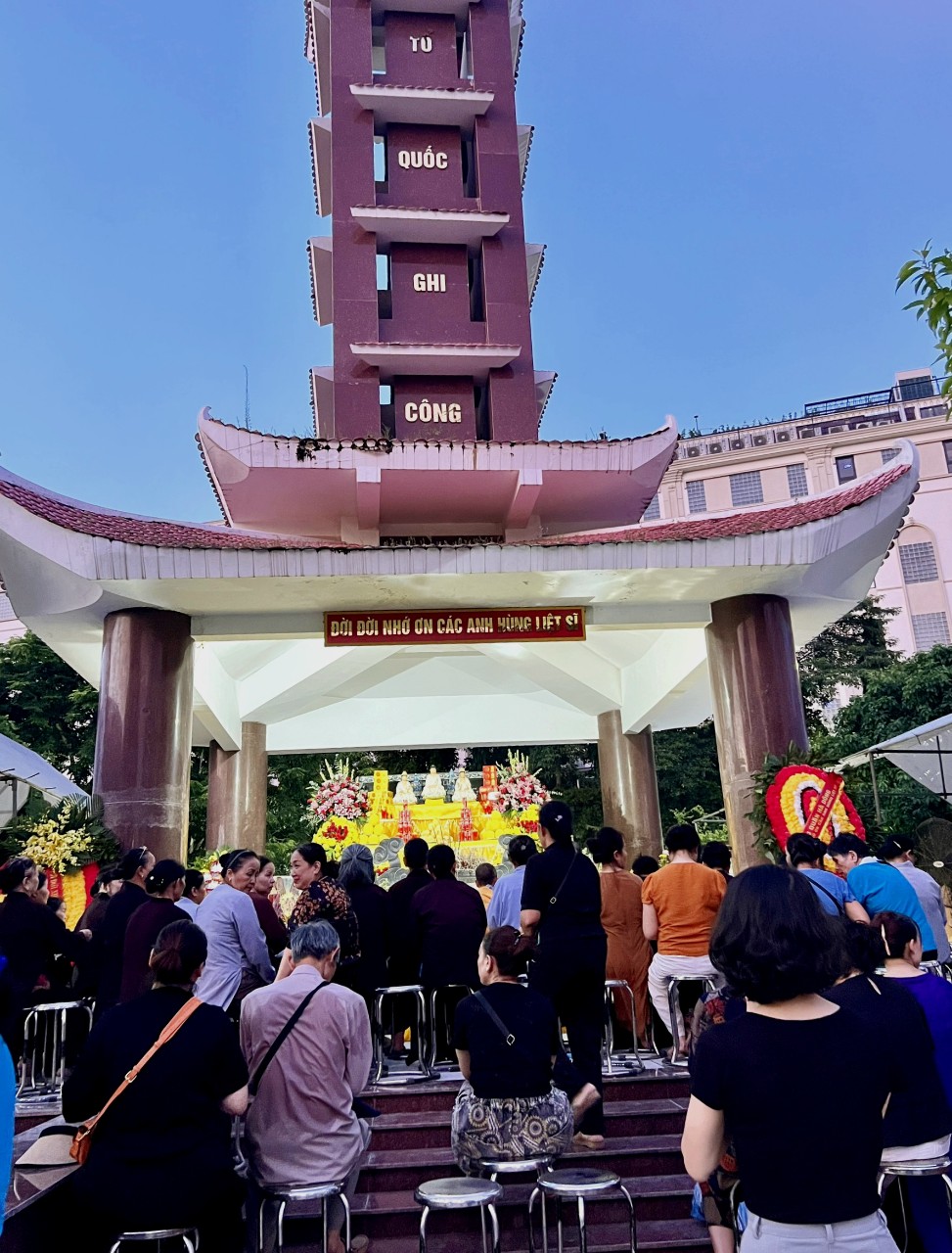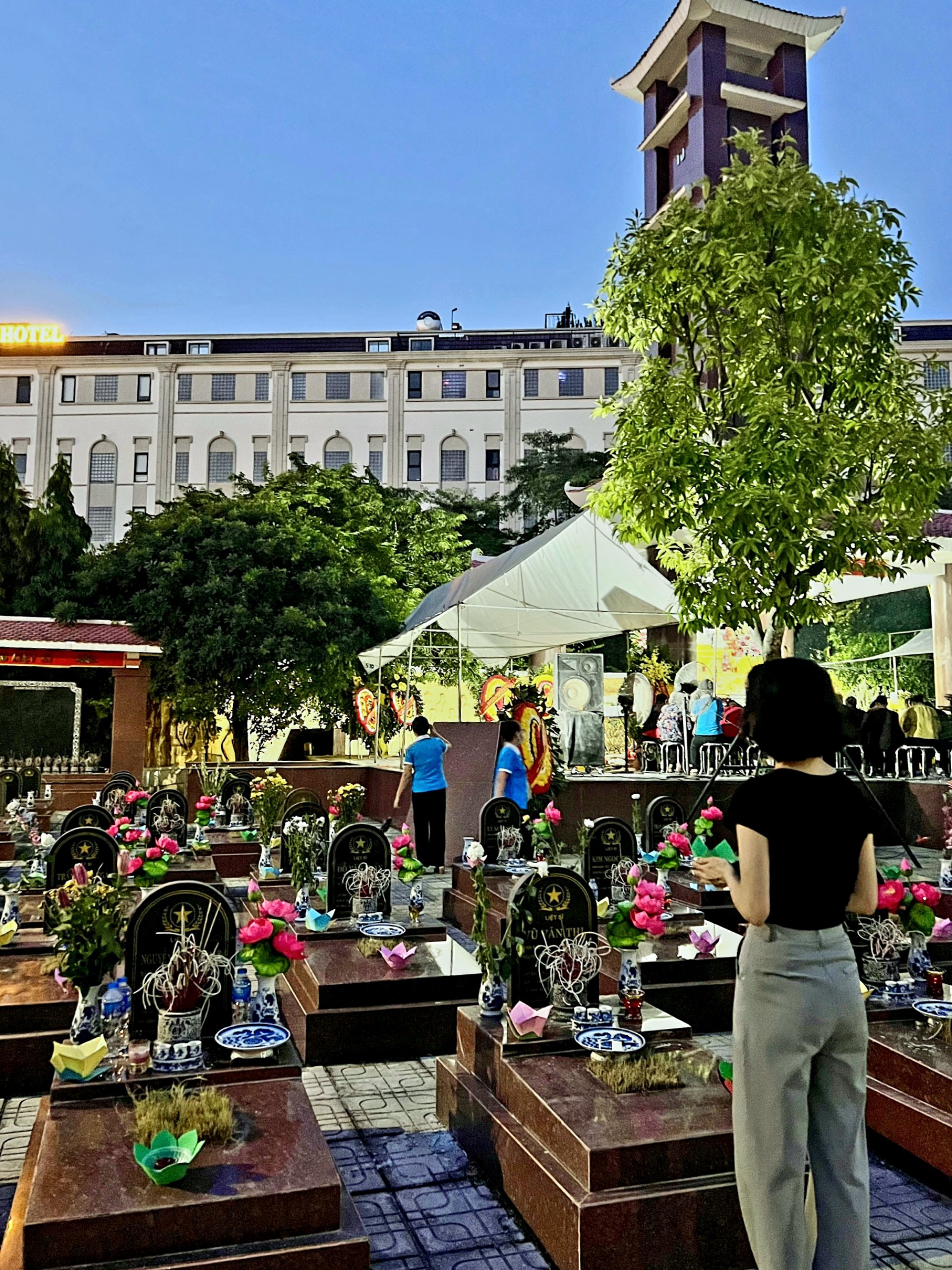 Lễ thắp nến tri ân đã diễn ra trong không khí trang nghiêm và cảm động, với mọi người cùng nhau thắp nến, dâng hoa và dâng lễ tại bia mộ liệt sĩ để gửi đến những lời cầu nguyện và lòng biết ơn sâu sắc nhất.
