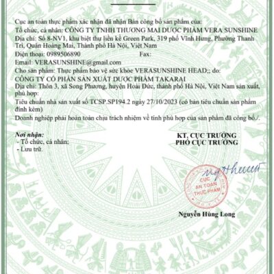 Tên sản phẩm: Thực phẩm bảo vệ sức khỏe VERASUNSHINE HEAD